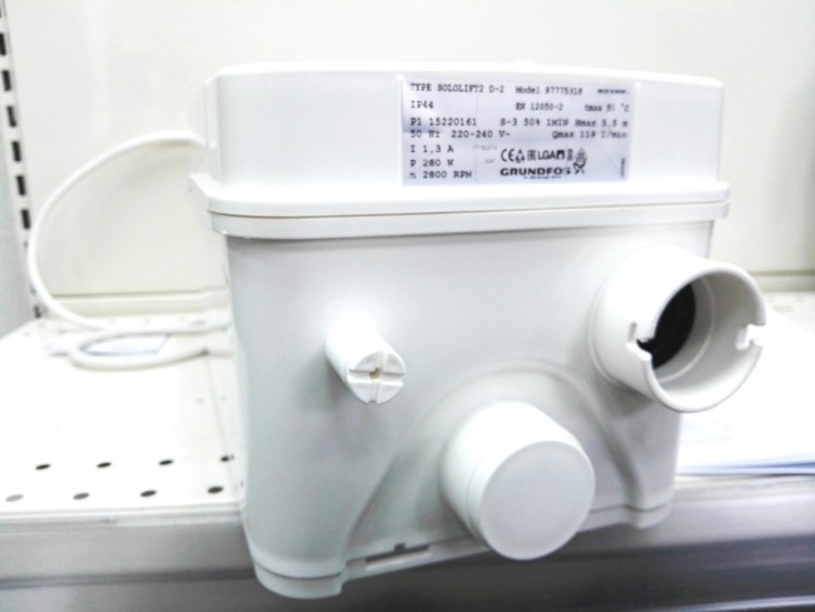 Модель Sololift2 D-2 имеет доступную стоимость, установка спроектирована для подключения к раковине, биде или душу, эффективно справляется с отведением серых стоков. Бытовой насос для канализации солофит2 д2 выпускается без режущей насадки.
